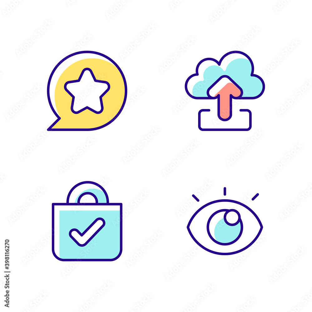 Easy To Use Interface Creation Process Rgb Color Icons Set Uploading Data To Remote Server Buying Things In Online Stores Isolated Vector Illustrations Stock Vector Adobe Stock